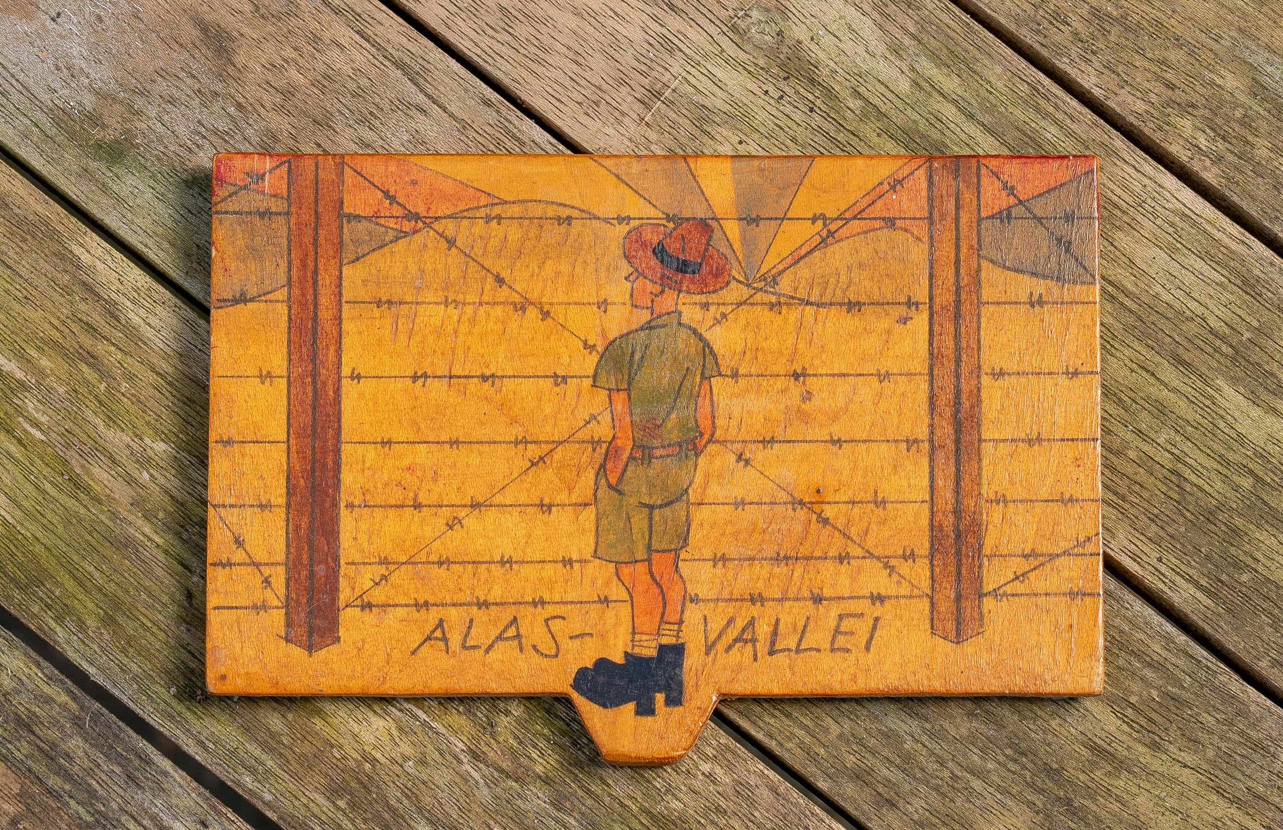 Sonnenburg: “Mijn vader vertelde niets over de internering en verdrinkingsdood van mijn grootvader. Mijn moeder gebruikte het houten doosje om haar sieraden in op te bergen. Pas heel veel jaren later vertelde ze mij dat het door mijn grootvader was gemaakt tijdens zijn internering in het kamp in de Alasvallei in Noord-Sumatra. Het houten geverfde plaatje bleek ook door mijn grootvader gemaakt te zijn.”