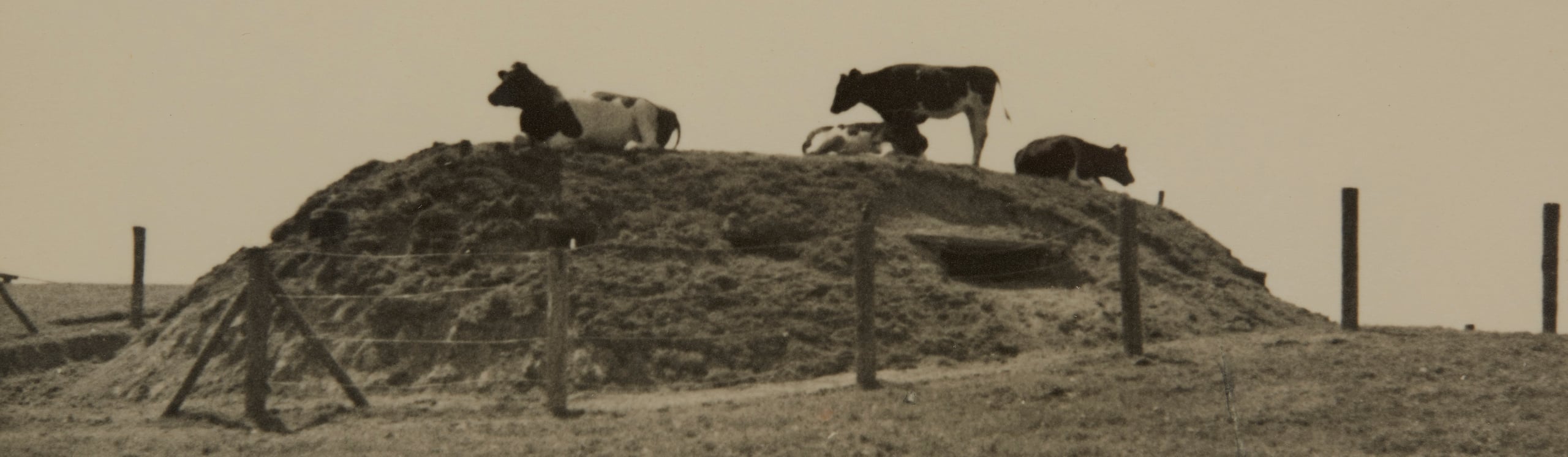 Een aantal koeien heeft kort na de Nederlandse capitulatie een prachtig uitzichtpunt gevonden op een voormalige veldversterking van de Wonsstelling.