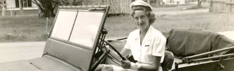 Groenhuijzen wordt in Surabaya ingezet als schrijfster bij de Marine Voorlichtingsdienst. Hier vult ze de eerste pagina’s van haar albums met herinneringen. We zien haar hier zelfs in een uniform, zoals op 16 juni 1948 zittend in een Jeep. Dat ze een uniform draagt is bijzonder, aangezien ze op het merendeel van de beelden vrijetijdskleding draagt. Deze foto is overigens duidelijk geposeerd, omdat ze pas twee maanden later haar rijbewijs haalt. In Surabaya wordt Groenhuijzen weinig met de oorlog geconfronteerd: foto’s laten militaire voertuigen of schade aan gebouwen zien, maar strijd en echt leed blijven buiten beeld.