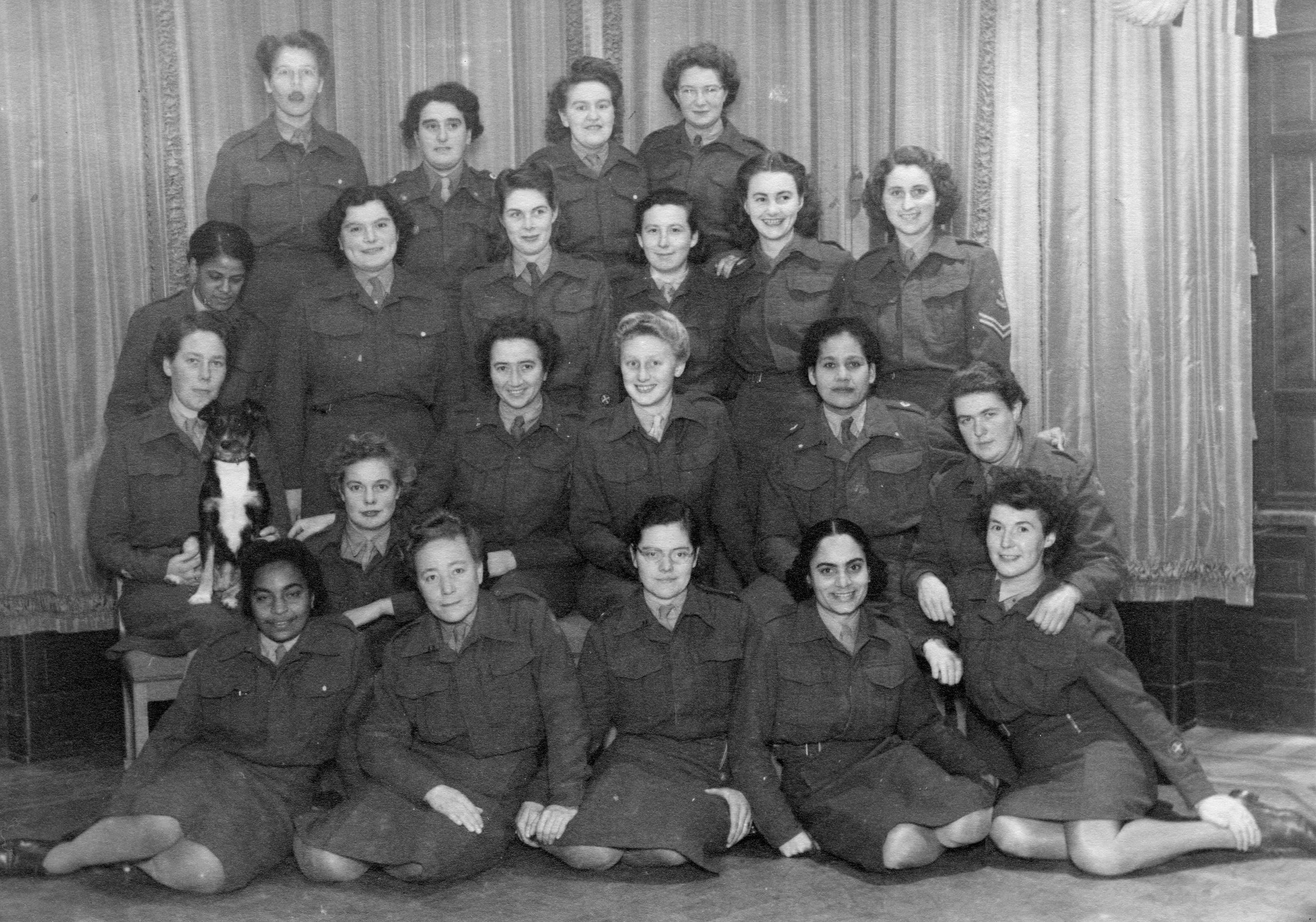 Unit VII van het VHK, dat ingekwartierd is op de Oranje Nassaulaan 1 in Amsterdam, oktober 1945. Anne van Trikt zit op de derde rij van boven, tweede van rechts.