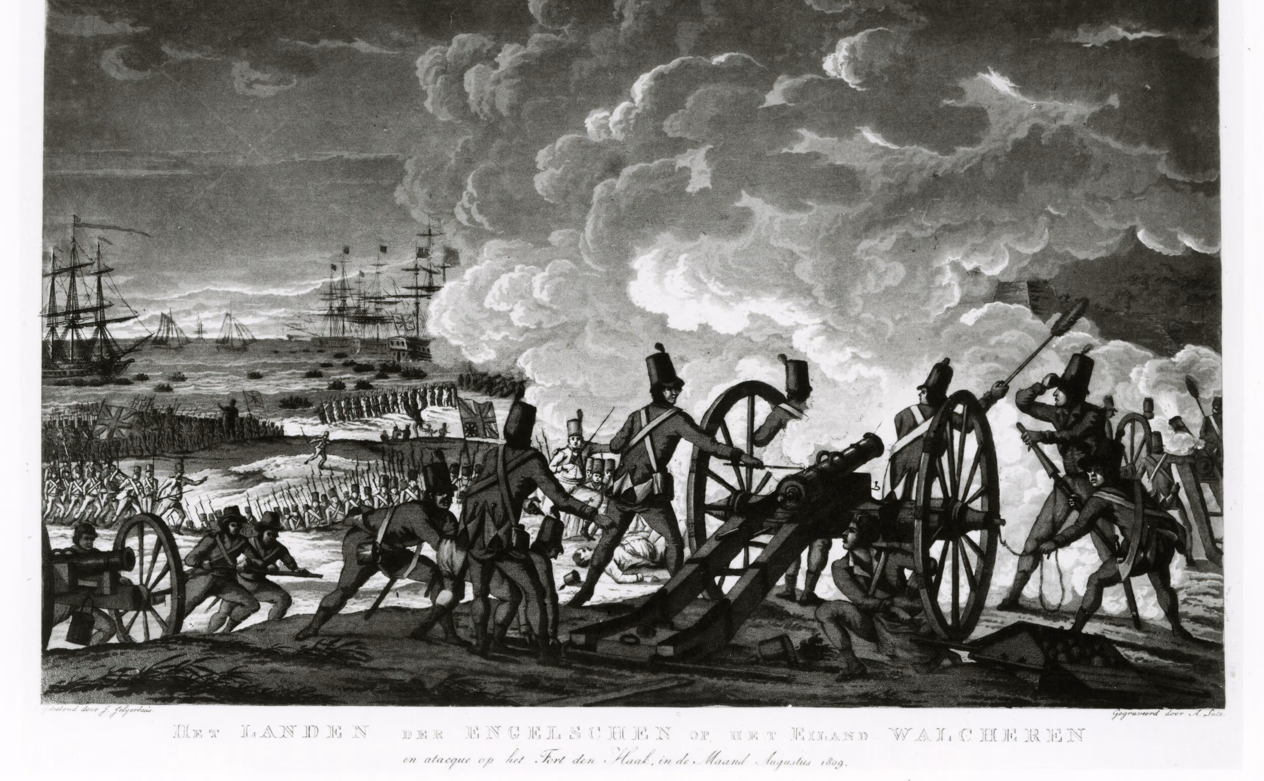 Tekening van de Hollandse troepen bij de inneming van Stralsund, 31 mei 1809.