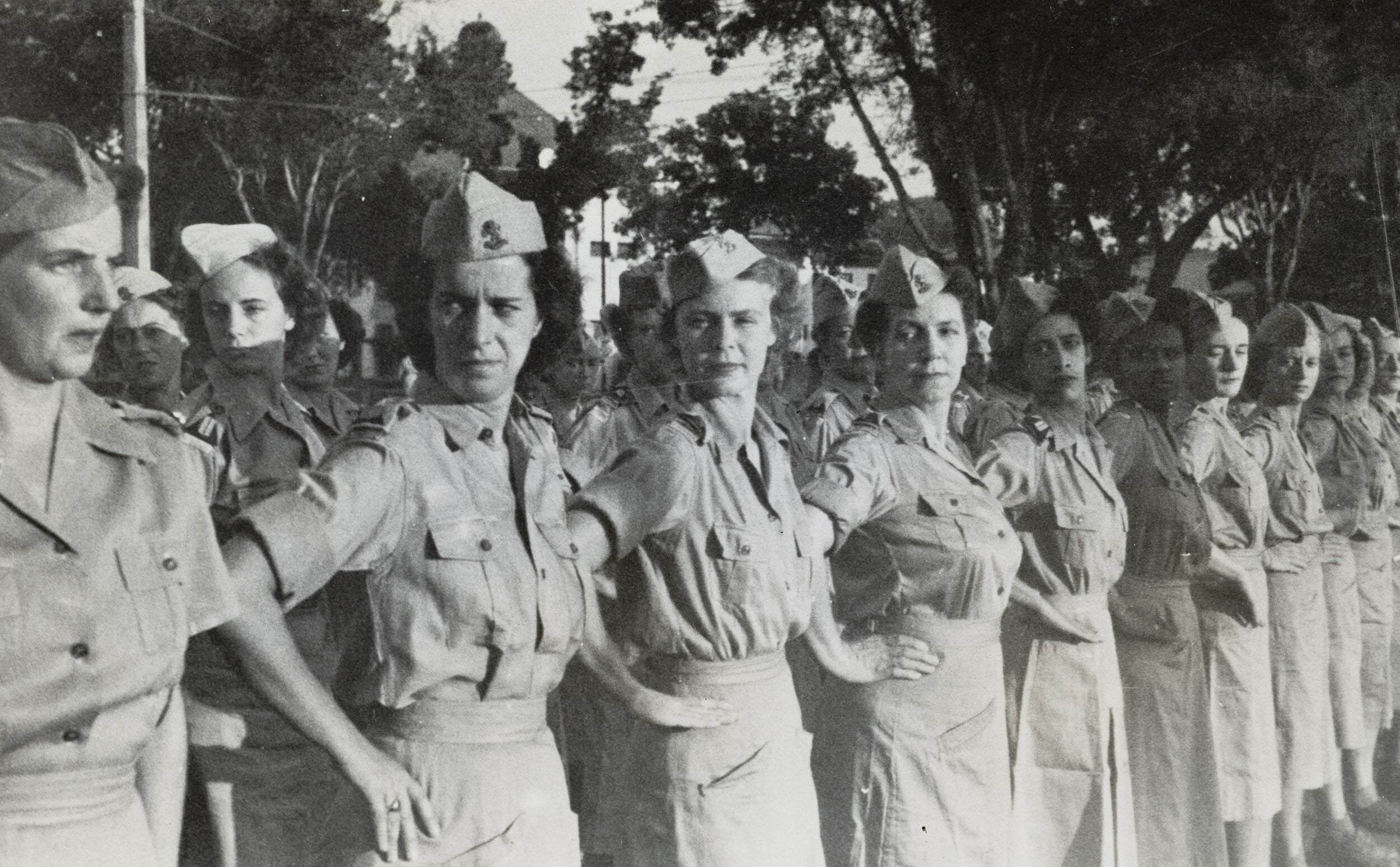 Sergeante van het Vrouwenkorps KNIL (VK-KNIL) geeft instructie. Locatie is waarschijnlijk Australië waar het KNIL Vrouwenkorps op 5 maart 1944, te Melbourne, werd opgericht.